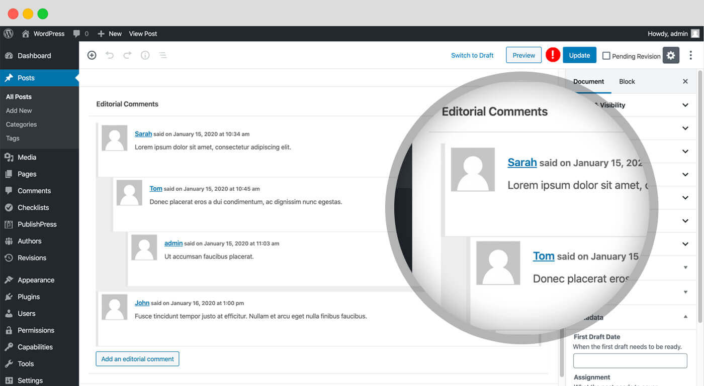 Editorial Comments: PublishPress Planner allows you to leave comments under each post you write.
