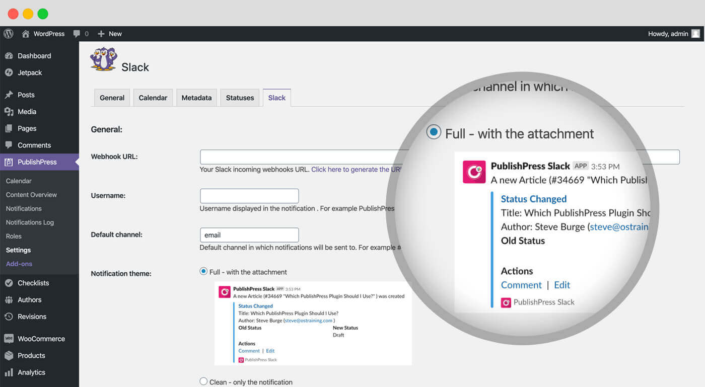 Slack Notifications: This PublishPress Planner Pro feature integrates your notifications with Slack.