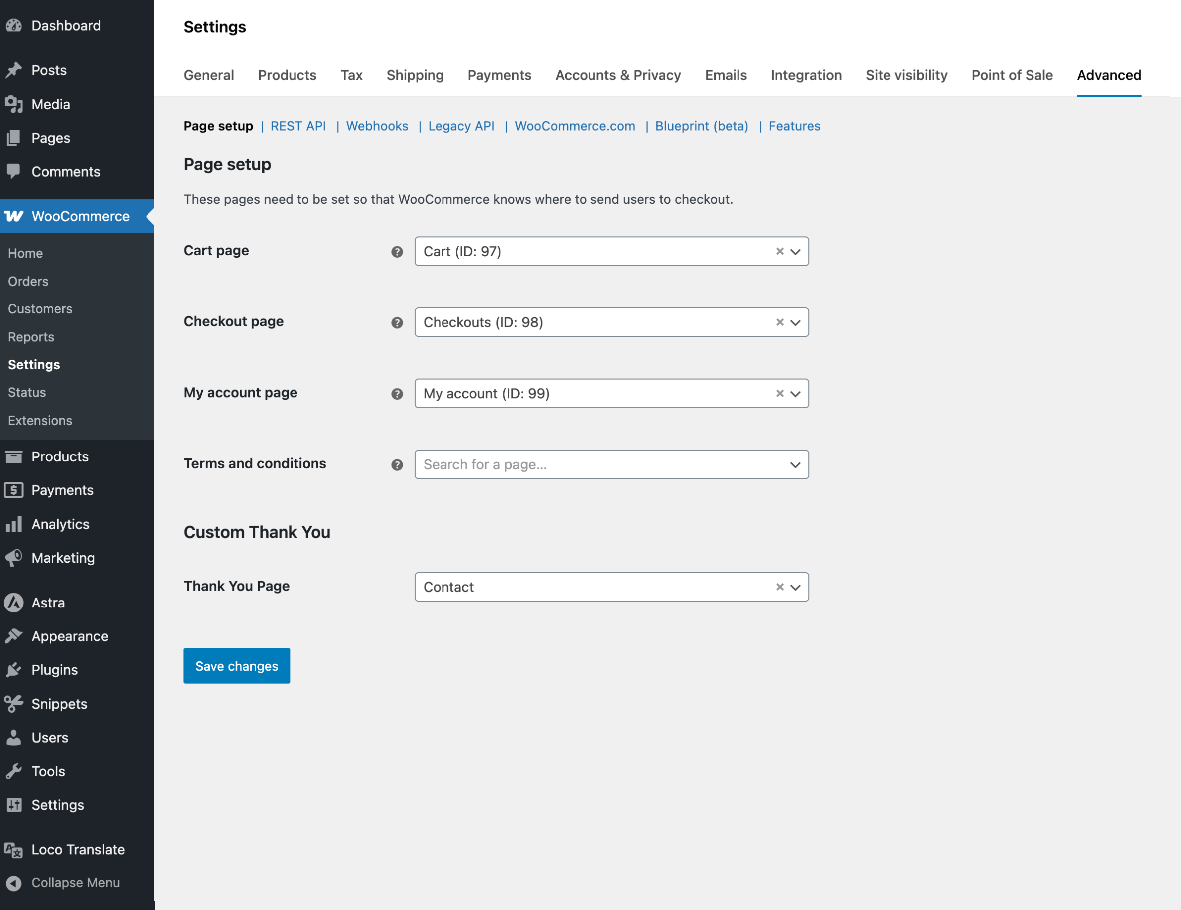 - Choose any WordPress page as your custom WooCommerce Thank You page.